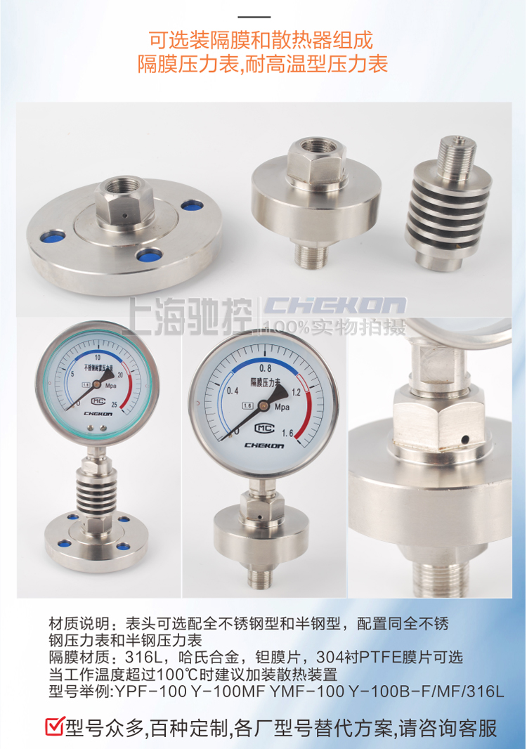 用隔離膜片將被測介質(zhì)與敏感元件分開的壓力表。