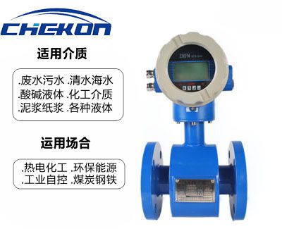 電磁流量計是根據(jù)法拉第電磁感應(yīng)定律進(jìn)行流量測量的流量計。電磁流量計的優(yōu)點(diǎn)是壓損極小,可測流量范圍大。量程比的比值一般為20:1以上,適用的工業(yè)管徑范圍寬,口徑可達(dá)3m,輸出信號和被測流量成線性,精度較高,可測量電導(dǎo)率≥5μs/cm的酸、堿、鹽溶液、水、污水、腐蝕性液體以及泥漿、礦漿、紙漿等的流體流量。