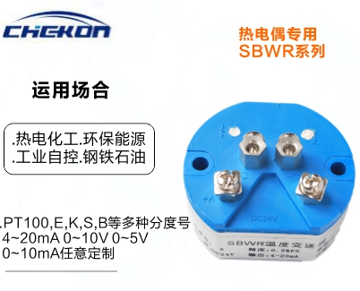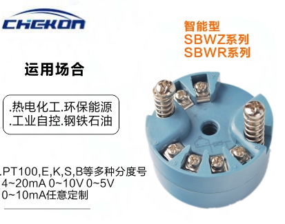 現(xiàn)場安裝在熱電偶、熱電阻的接線盒內使用,直接輸出4-20mA、0-10mA的輸出信號。這樣既節(jié)約了昂貴的補償導線費用,又提高了信號遠距離傳輸過程中的抗干擾能力;