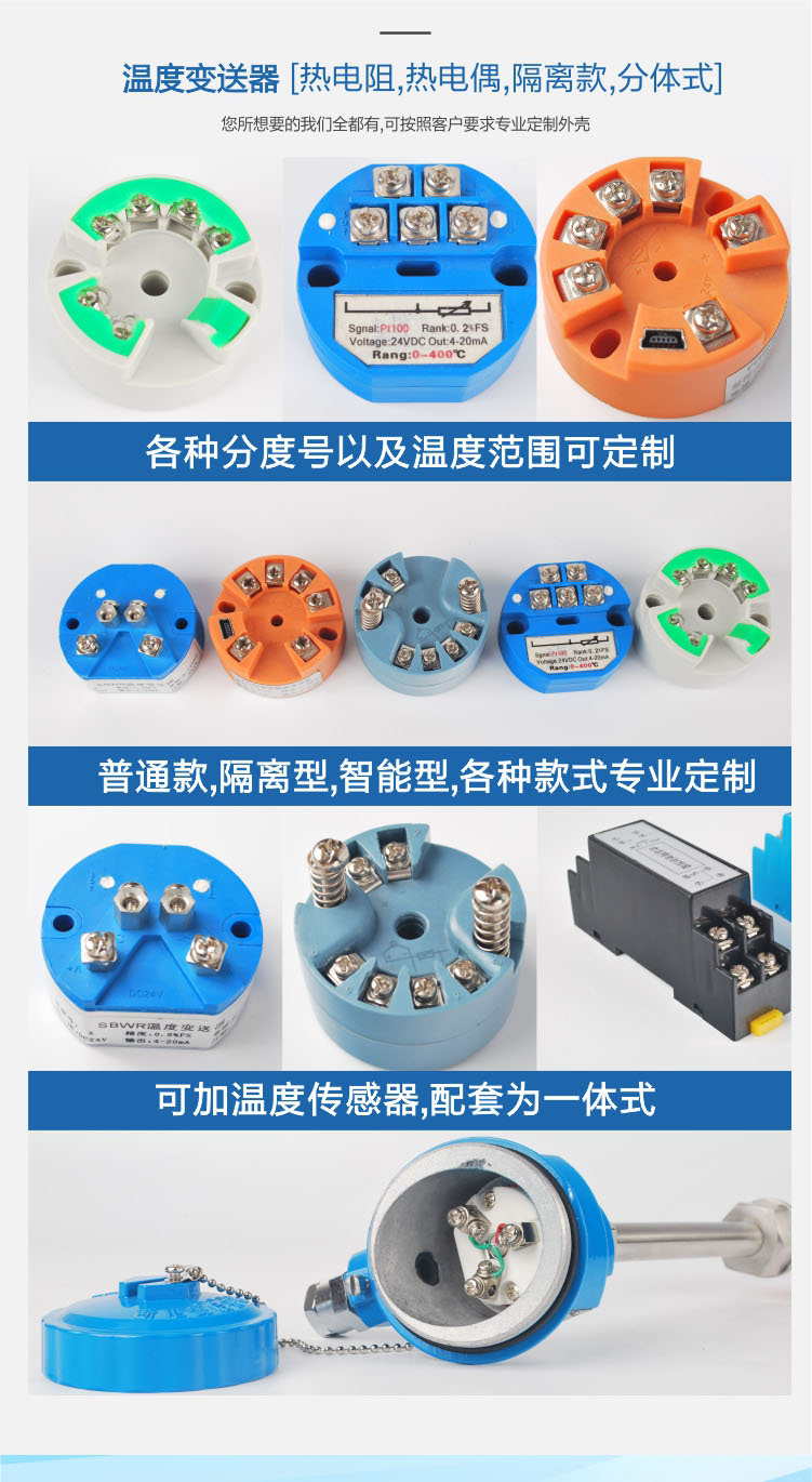 適用范圍廣、既可以與熱電偶、熱電阻形成一體化現(xiàn)場安裝結構,也可以作為功能模塊安裝在檢測設備中和儀表盤上使用;