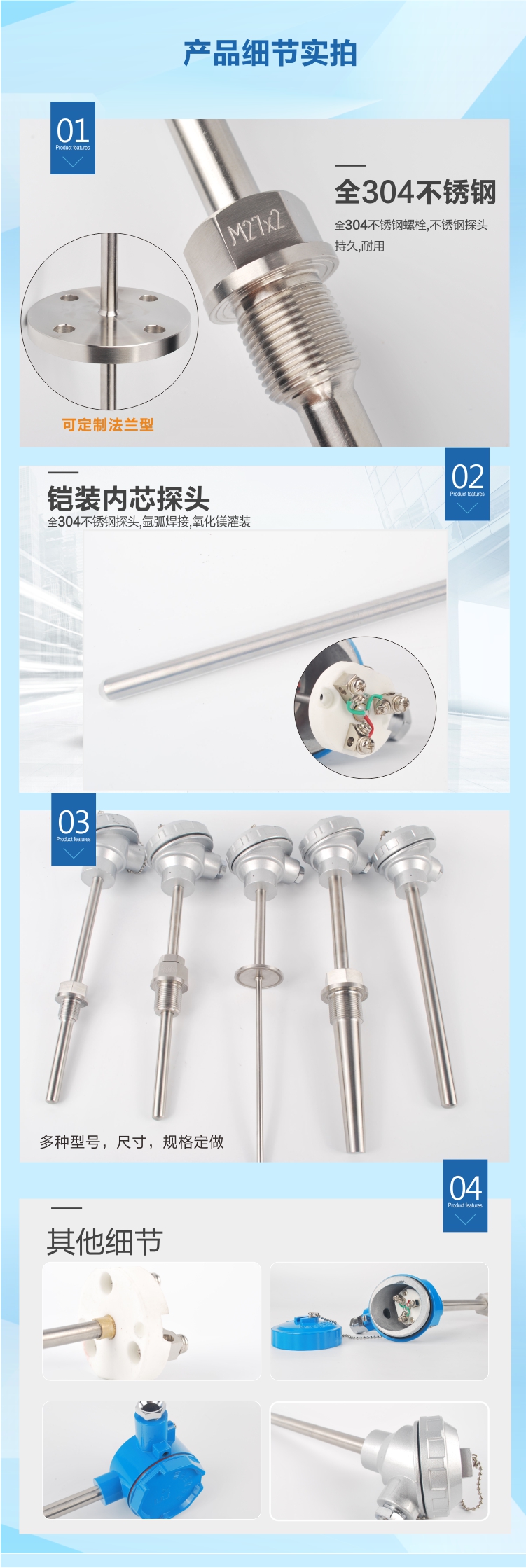 1.壓簧式感溫元件,抗振性能好.